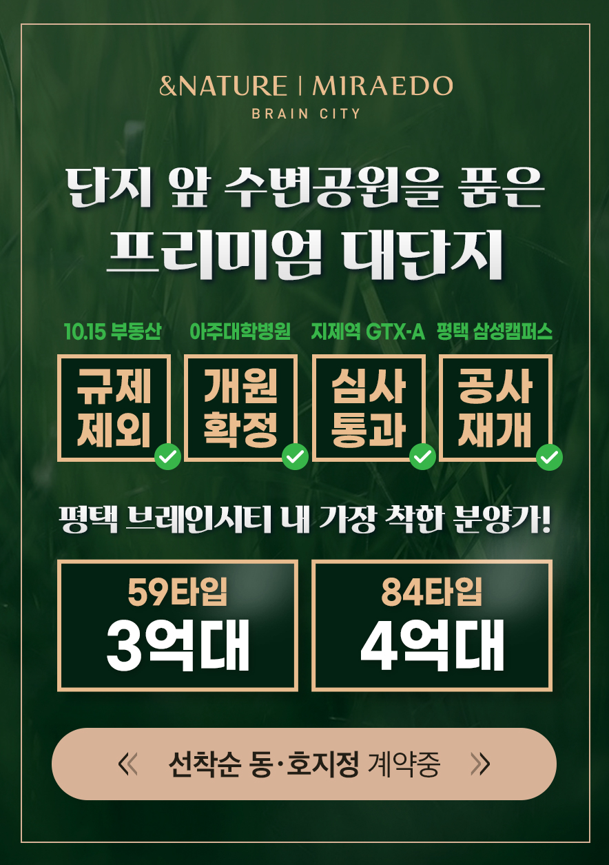 브레인시티 내 최상의 평면과 최고의 품질을 갖춘 아파트